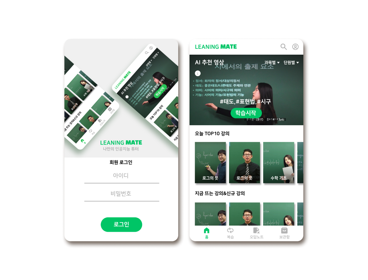 최종적으로 이펙트를 최대 제거한 버전으로 전달하였으며 자잘한 피드백 반영하여 완료하였습니다. 앱내 그래픽 및 아이콘 등 모두 자체제작하여 제공하였으며 내부 샘플이미지로 사용된 강의 이미지만 임의로 사용되었습니다. 데모이지만 본 서비스를 실제적으로 제공함에 있어서는 향후 인강 커버 이미지를 자체디자인 하여 다양한 컬러풀하게 표지로 제공하면 사용자에게 구분하기 쉽고 한눈에 들어오는 서비스로 정착할것으로 생각되어집니다. 특히나 이런 영상 및 과목별 컨텐츠는 커버의 디자인요소를 크게 넣는 경향이 있어 (예: 4주 완성 영단 등)