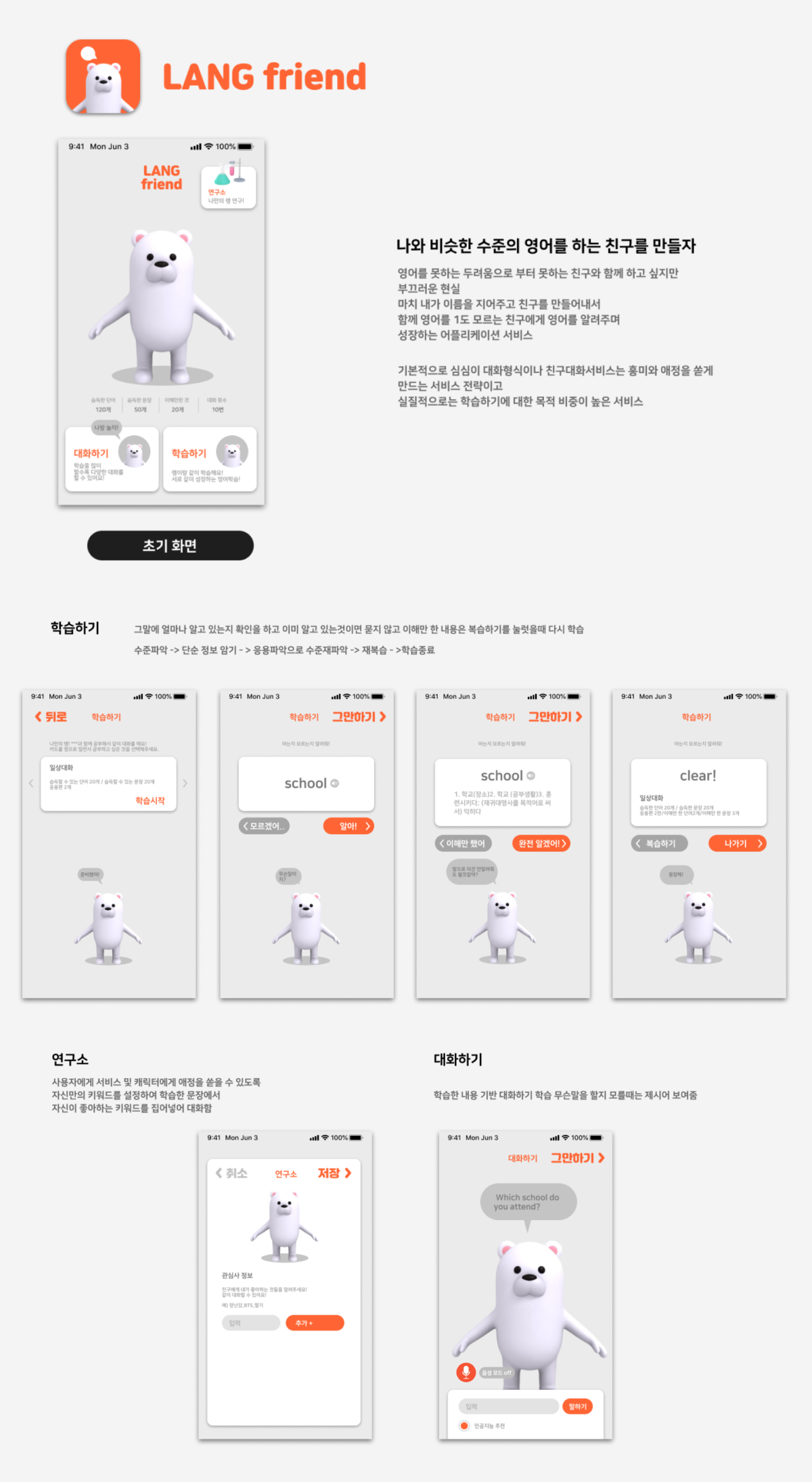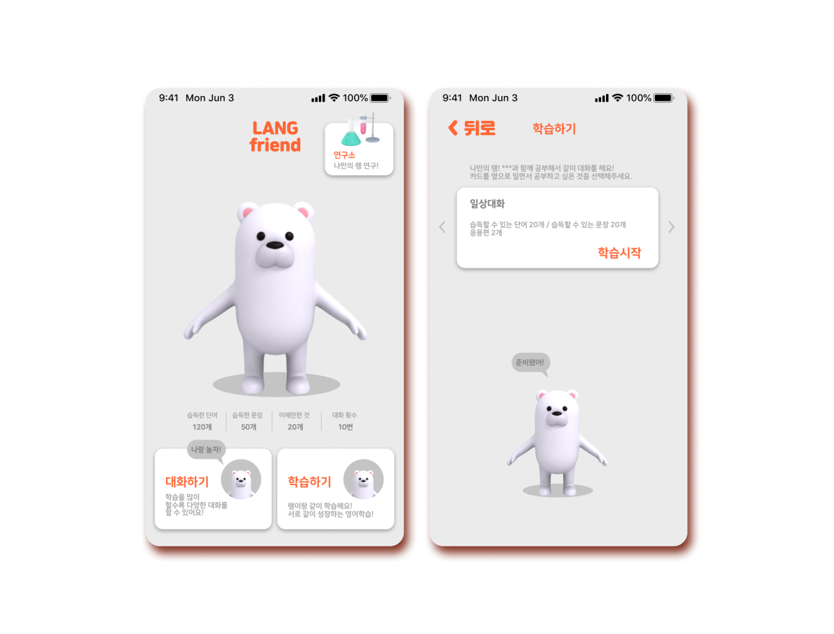 아동 대상으로 하여 영어 언어학습을 하고 캐릭터를 꾸미는 요소와 놀이 요소를 추가 수익모델로 도전하고자 하였습니다.